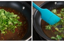 When the sauce is bubbling, add the chicken and quickly coat well with the sauce. Don’t leave in the pan for no more than 15 seconds. Transfer to a serving plate.