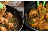 - Slowly place 4-6 chicken into the wok (Work with a few pieces at a time, so the oil temperature won’t drop quickly). Deep fry the chicken for 90 seconds, or until the chicken is light golden color. Transfer the chicken to a wire rack or paper towel to drain excess oil. Let the chicken cook with remaining heat while you work on the rest of chicken.