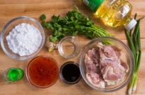 - Peel the ginger skin and grate it. Cut the green onion/scallions and cilantro into small pieces.