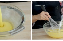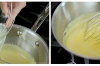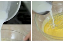 - Slowly add in the warm milk, whisking constantly (tempering the egg mixture).
