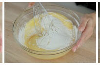 - Take out the batter from the refrigerator. The batter should be slightly smoother now. Stir in 2 Tbsp* of water and whisk to combine until the batter reaches the ribbon stage (When you lift the whisk over the mixture, the batter falls slowly forming thick ribbons which hold their shape atop the batter). *Depends on the size of eggs and how accurate your flour measurement is, the water amount may vary, so start adding 1 Tbsp first, then slowly add more if needed.
