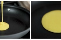 Dip a paper towel in 1 tsp vegetable oil and coat the bottom of the pan with the oil. Then remove the oil completely (that’s the key for evenly golden brown dorayaki surface).