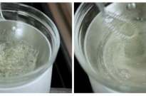 In a saucepan bring 1 inch (2.5 cm) of water to simmer and place the bowl of gelatin mixture over the saucepan. Steam will immediately warm up the glass bowl and start dissolving the gelatin. Turn off the heat and set aside. If somehow you end up taking a longer time to do the following process and the gelatin has set into a solid, you will need to melt it back into a liquid with double boiler again.