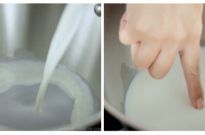 In a medium saucepan, heat the milk (150 ml, ⅔ cup) over medium heat until the milk is warm to the touch. We’ll be using the other half of milk later on.
