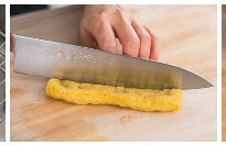 - To remove the oil from aburaage, you can either pour boiling water over the tofu pouch in a sieve over the sink, or have a quick blanch over the boiling water in a small pot for 15 seconds (flipping 1-2 times). Once that’s done, cut the aburaage in half widthwise, and cut thinly. Keep the other half for future use.