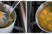 - If you wish to add the turnip leaves into the soup, quickly chop the green leafy part of the turnip. Add some into the soup and save the remaining greens. At this stage, make sure the soup is hot and you’re about to serve miso soup. What to do with the rest of chopped leaves? Read Notes for a quick delicious recipe.
