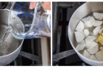 Cover with the lid, but keep it slightly ajar to avoid boiling over. Bring it to a boil over medium heat. Once boiling, lower the heat to simmer and cook the turnip for 5-6 minutes, or until it’s transparent.