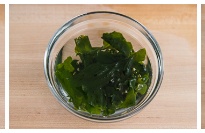 - Soak the dried wakame seaweed in water for 5 minutes. Drain, squeeze water out, and set aside.