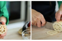 - Lotus root: Slice thinly and soak in water (or ideally 2 cups water + 1 tsp of rice vinegar) for 10 minutes.