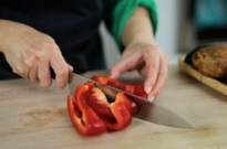 - Bell pepper: Remove the seeds and cut into 4 wedges.
