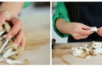 - Discard the bottom of the shimeji mushroom stem. Roughly separate the mushrooms.