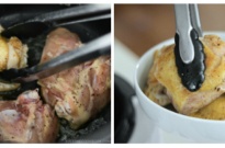 - After the bottom side is nicely brown, flip to cook the other side. Then transfer the chicken to a plate and continue with the next batch. Set aside.