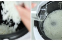 - Rinse rice and drain well. Place rice and water in the inner pot of the cooker. Close the lid.