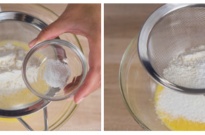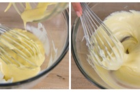 - Now transfer the egg yolk mixture into egg whites. Carefully fold in two mixtures together without breaking the air bubbles. Make sure to gently mix the batter thoroughly!