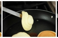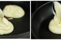 Here is another set of images to show the process. Slightly pull the pancake to create an empty space and gently flip over with “rolling over” motion.
