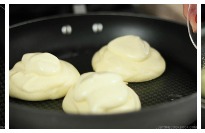- Heat the large non-stick frying pan to 300 ºF (150 ºC) over the lowest heat. Brush with cooking oil and lightly remove any visible oil (otherwise the pancakes will have spotty pattern). Keep the heat on while you combine egg whites and egg yolk mixture.