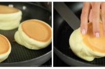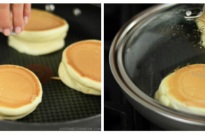 Unlike regular pancakes, you will need to cook these thick & fluffy Japanese pancakes for a much longer time. If you use higher heat, the pancakes may look done, but the inside will be too raw. Therefore, steady slow cooking over low heat is necessary. To lock in the heat and moisture inside the pan, cover with a lid.