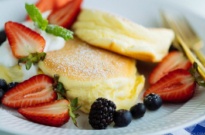 Enjoy these souffle pancakes the same way you do with standard flapjacks, with fresh whipped cream, some fruits, syrups, and toppings like chocolate chips and nuts.