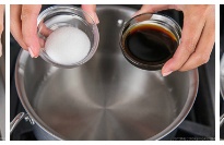 - Combine all the seasoning ingredients (2 Tbsp sake, 2 Tbsp mirin, 1 Tbsp granulated sugar, 2 Tbsp soy sauce, and 1 ½ cup water) in a saucepan.