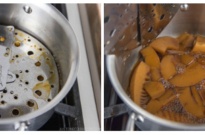 - Add the bamboo shoots in the seasonings in the saucepan. Place the otoshibuta (drop lid) on top, and bring to a simmer over medium heat.