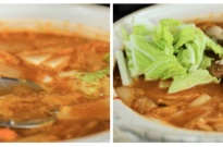- Skim off the foam and fat. Add the soft ingredients such as leafy part of napa cabbages, mushrooms, and tofu.