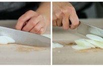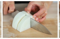 - Cut the daikon into quarters lengthwise then thinly slice them.